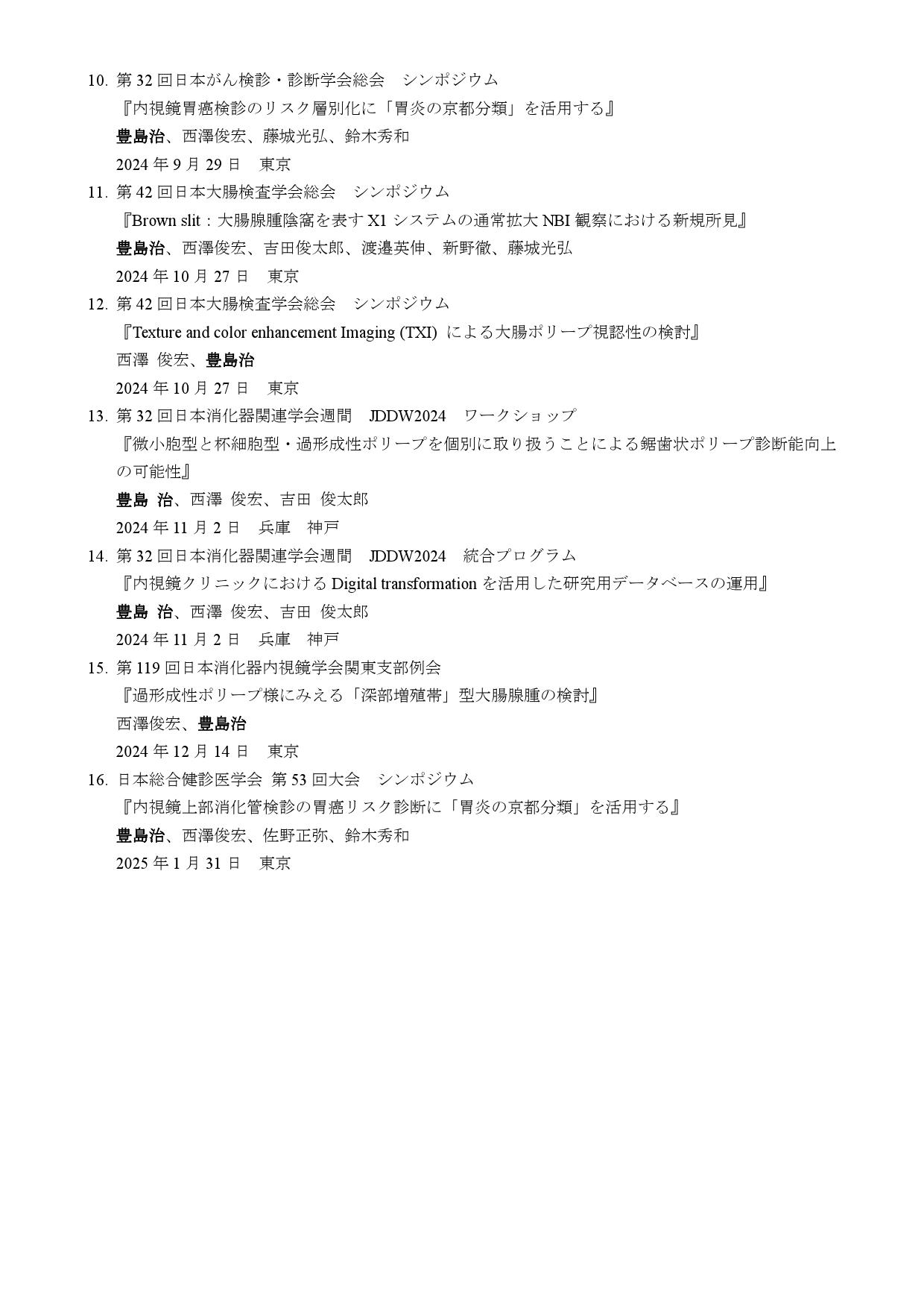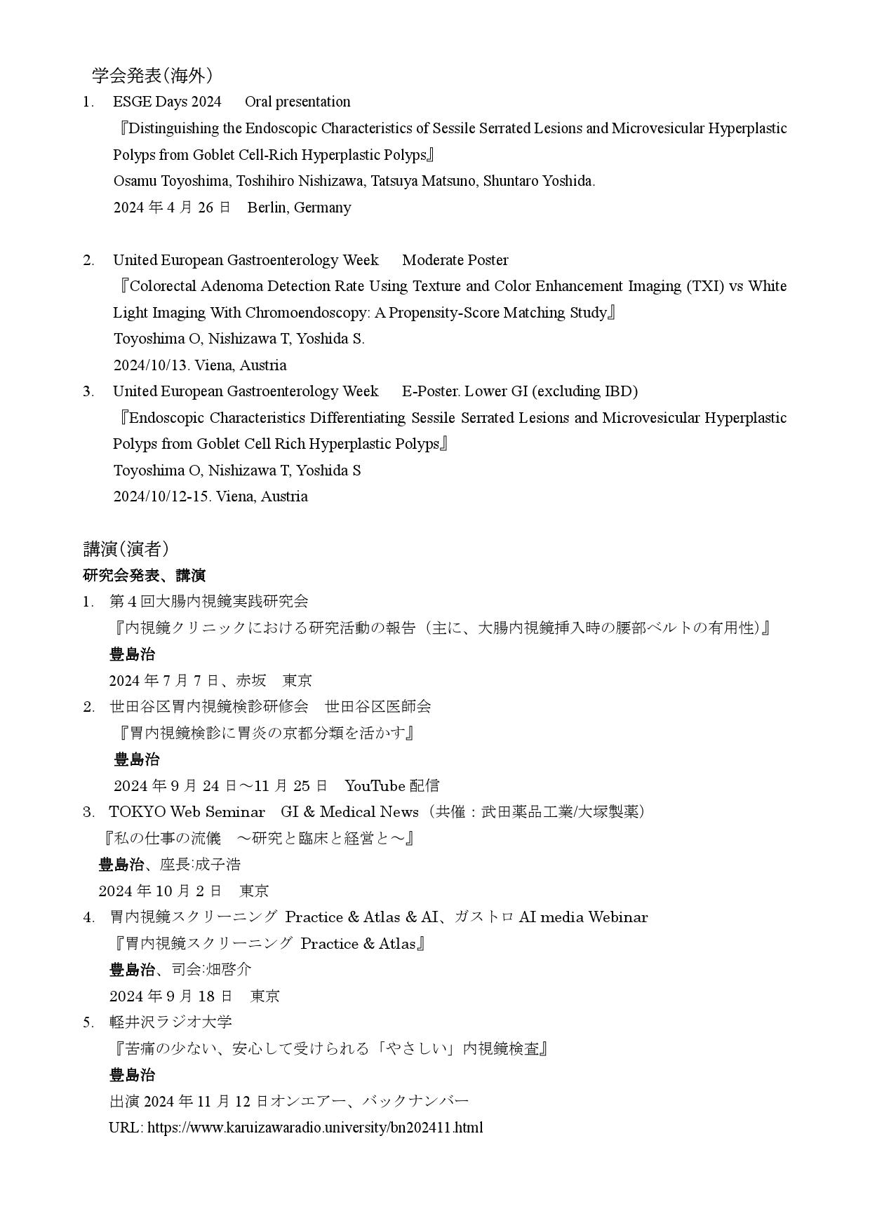 2024年度の当院の院外活動(講演発表、論文)をご紹介頂けました。